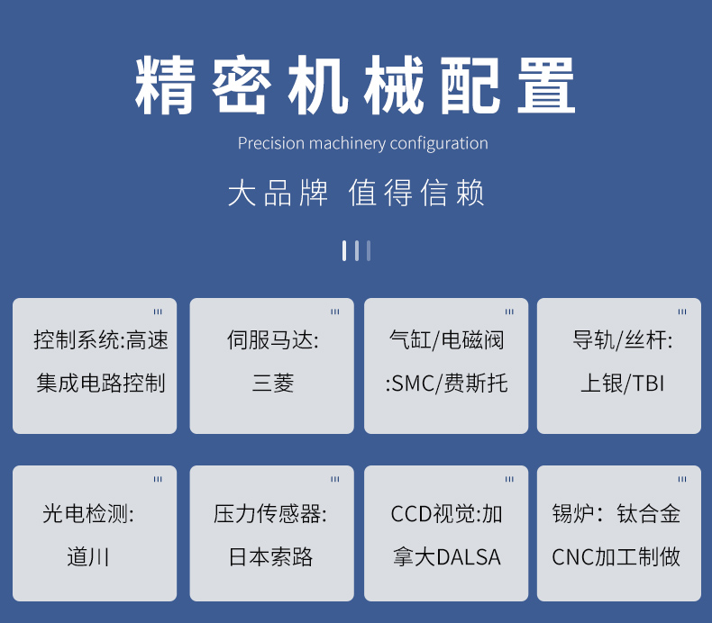 检测装置   Alarming device   CCD端子外观检测(选配)、气压检测、压力监控、CCD端子入壳检测、缺电线检测、胶壳上料检测、端子上料检测